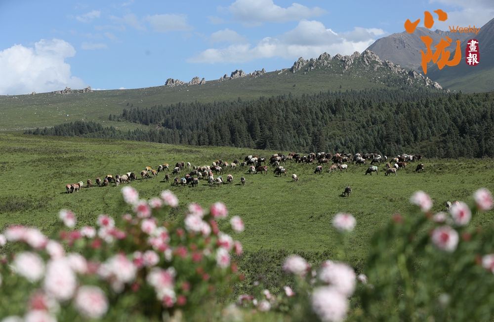 祁連下的康樂(lè)草原,是肅南裕固族人生活的地方。這里風(fēng)光秀美,山地高原交相呼應(yīng),丘陵漫甸連綿起伏。放眼周?chē)?,遠(yuǎn)處祁連山巍峨挺拔,近處樹(shù)木郁郁蔥蔥,優(yōu)美壯觀。