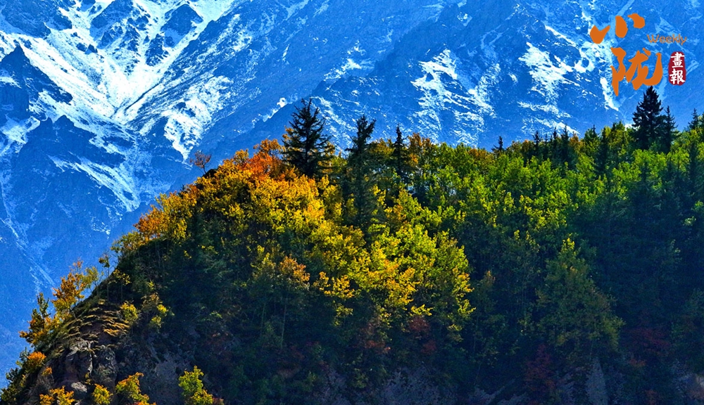 秋風(fēng)吹過(guò),祁連山的原始森林悄然換裝。黃綠交織,紅金點(diǎn)染,仿佛大自然執(zhí)筆揮灑的油畫(huà),靜謐而熱烈。尤其是在陽(yáng)光的照耀下,與遠(yuǎn)處的雪山和湛藍(lán)的天空、潔白的云朵,形成鮮明的對(duì)比。