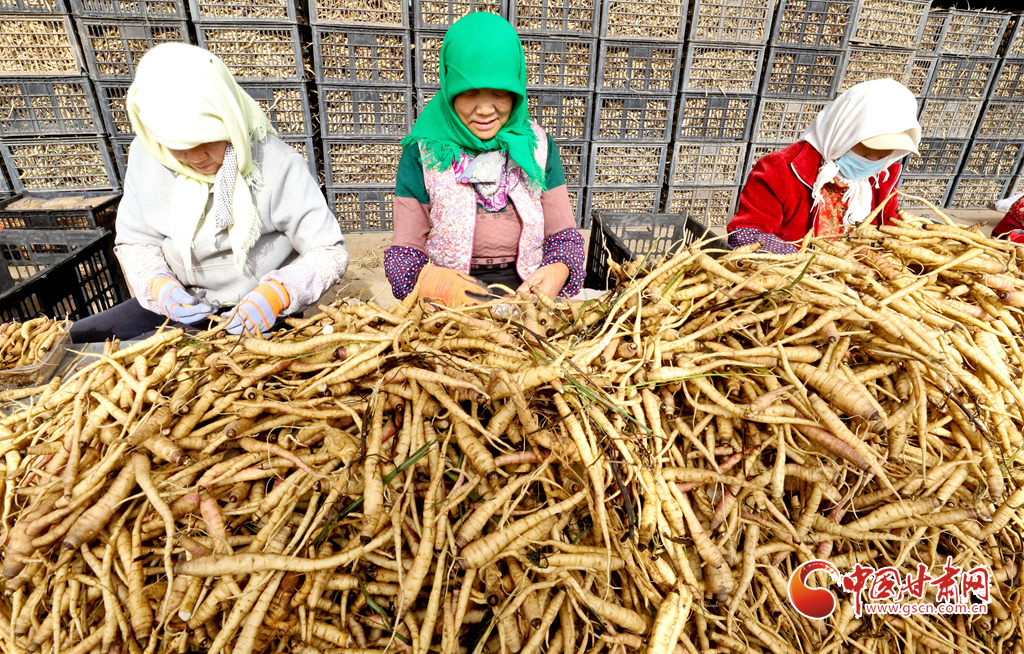 山丹黃參是當(dāng)?shù)靥赜械脑鷳B(tài)植物特產(chǎn)。近年來(lái),通過(guò)對(duì)黃參生態(tài)習(xí)性、生長(zhǎng)規(guī)律及種植技術(shù)的系統(tǒng)研究與探索,山丹黃參終于實(shí)現(xiàn)了從野生到人工規(guī)模化種植的突破。今年,當(dāng)?shù)匾劳?ldquo;公司+合作社+農(nóng)戶(hù)”模式,種植黃參5000多畝,畝產(chǎn)在400公斤以上,創(chuàng)下歷年新高,迎來(lái)豐收。全國(guó)各地食品加工客商的訂單也似雪片般飛來(lái)。