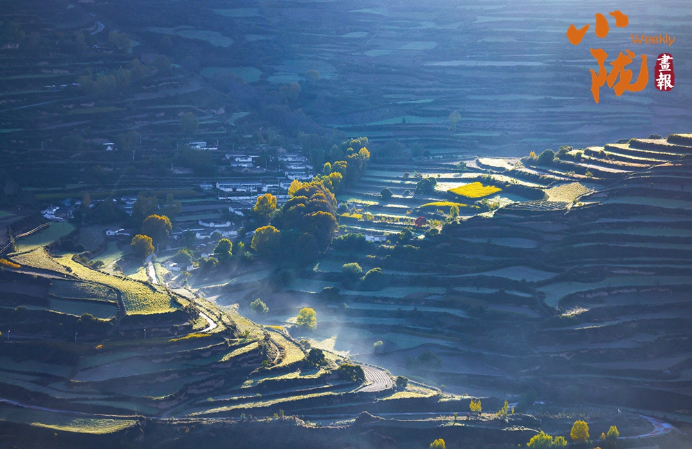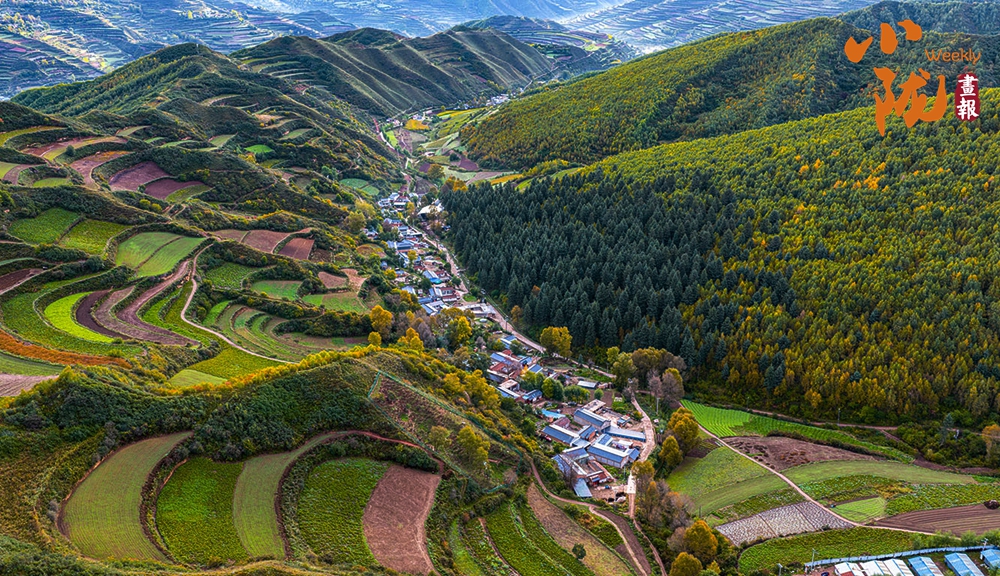 秋末初冬,多彩秋色映照著美麗的臨潭。五彩斑斕的梯田縱橫交錯(cuò)、順山而變,宛如一條條彩帶,在山間飛舞。村落點(diǎn)綴其間、古樸自然,田園生活詩意盎然。