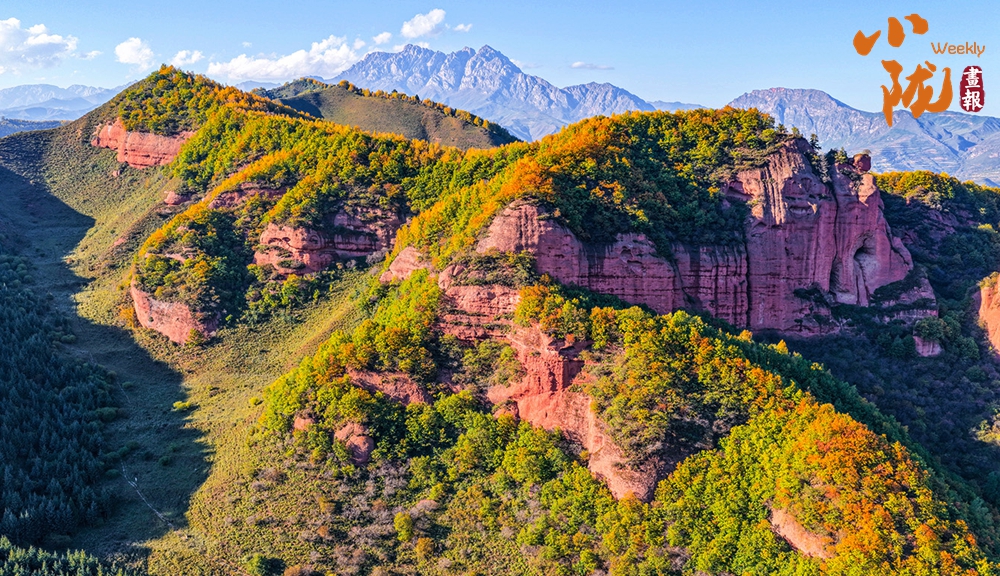 俯瞰整個(gè)冶力關(guān),遠(yuǎn)處的雪峰在陽光照耀下泛著銀光,與近處的彩林形成鮮明對(duì)比,宛如一幅氣勢(shì)磅礴的山水畫卷。