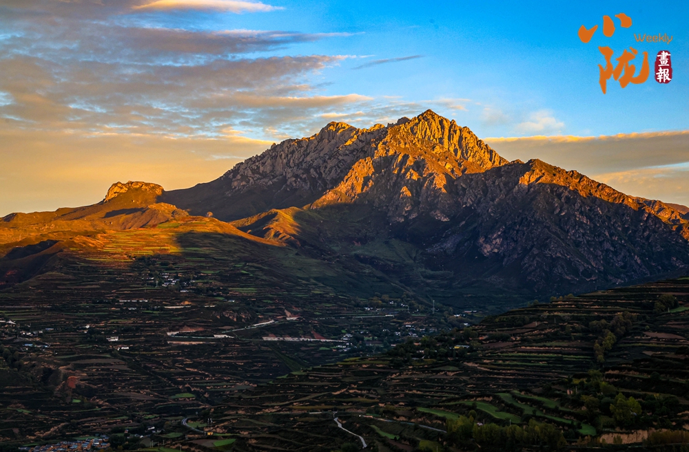 夕陽的余暉照在山頂,這種光影交錯(cuò)的效果,為山巒增添了神秘感。山腰以下則林木蔥籠,色彩斑斕,村落依山傍水、古樸自然,像一幅被歲月輕輕展開的水墨長(zhǎng)卷。
