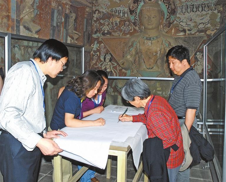 2007年,為石窟考古報(bào)告評議手工測繪圖。 本版圖片除署名外均由敦煌研究院提供