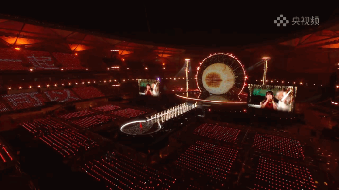 光,也是這場(chǎng)敘事中無(wú)聲的語(yǔ)言。燈光總監(jiān)董江從鴻蒙系統(tǒng)的開機(jī)動(dòng)畫中汲取靈感,將極具辨識(shí)度的“星環(huán)”造型貫穿整個(gè)場(chǎng)館空間。設(shè)計(jì)團(tuán)隊(duì)不僅用數(shù)百臺(tái)燈光設(shè)備在舞臺(tái)上空構(gòu)建了一個(gè)直徑31米的超級(jí)光環(huán),更在體育場(chǎng)內(nèi)豎立起8組高達(dá)24米的立體燈光塔,讓每一位觀眾都被籠罩在“在一起”的視覺(jué)敘事之中。據(jù)總導(dǎo)演田梅介紹,那打動(dòng)了無(wú)數(shù)網(wǎng)友、點(diǎn)綴在觀眾席上的四萬(wàn)盞燈球,并非輕易鋪就的背景,而是歷經(jīng)超百位工人三次接力安裝、反復(fù)調(diào)試才得以呈現(xiàn)的呼吸光海。最初,這一設(shè)計(jì)曾因執(zhí)行難度而面臨調(diào)整,但在總導(dǎo)演田梅的堅(jiān)持下,最終被完整保留。在她看來(lái),這片星海是對(duì)盛典主題內(nèi)核的生動(dòng)詮釋:“‘在一起,就可以’不僅是一句口號(hào),更是對(duì)這個(gè)時(shí)代最溫暖的注腳。它告訴我們:再遙遠(yuǎn)的夢(mèng)想,也終將在并肩同行中,變得觸手可及。”隨著節(jié)目播出,燈球呈現(xiàn)出“在一起,就可以”“鴻蒙星光盛典”等字符,明亮而浪漫。四萬(wàn)星光分散在每一張座椅上,如同散落在千行百業(yè)、千家萬(wàn)戶中的每一個(gè)開發(fā)者與用戶;它們又能連成一片星海,展現(xiàn)出“在一起,就可以”的力量。
