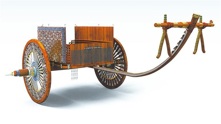 馬家塬西戎墓葬出土的戰(zhàn)國馬車復原效果圖。