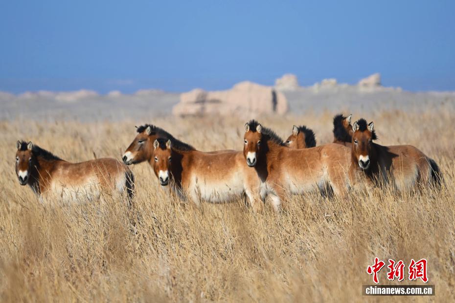 甘肅敦煌西湖國家級自然保護區(qū)自2010年啟動普氏野馬野化放歸工作以來,目前種群數(shù)量達212匹,已從試驗性野化放歸階段過渡到自由生活的野生種群階段,實現(xiàn)完全依靠自身能力在野外繁衍生息,呈現(xiàn)自我維持和增長趨勢。普氏野馬有著6000萬年進化史,在中國一度接近野外滅絕。1985年,中國啟動“野馬返鄉(xiāng)計劃”,先后數(shù)次從英國、德國、美國引進普氏野馬進行繁育保護,逐步恢復(fù)和重建普氏野馬野生種群,一步步為它們搭建“回家之路”。普氏野馬野化放歸成效顯著,不僅使普氏野馬重新在故土建立起可自我繁衍的野生種群,還促進植物群落更新和物質(zhì)循環(huán),為整個生態(tài)系統(tǒng)注入活力。圖為1月8日,在甘肅敦煌西湖國家級自然保護區(qū)內(nèi)拍攝的普氏野馬。