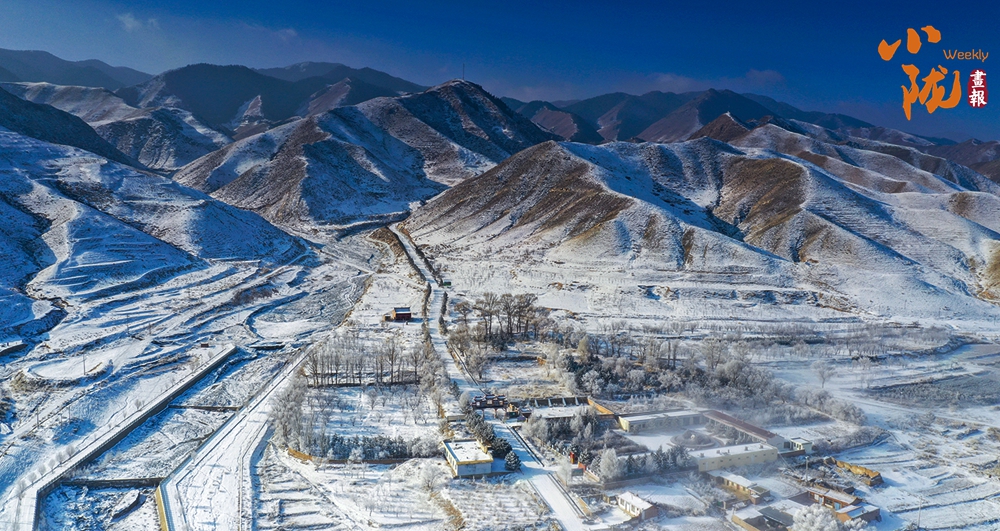 山下的屋舍靜臥于無邊的潔白中,淺藍天色漸次暈染,蒼灰山脊如墨筆勾勒,山川草木皆成了畫中疏淡的筆意,低訴著悠長的冬韻。
