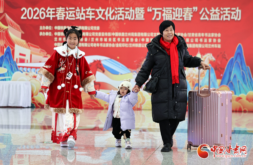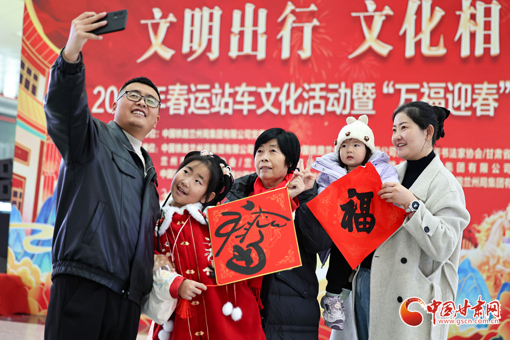 2月2日,2026年鐵路春運(yùn)大幕正式拉開。中國鐵路蘭州局集團(tuán)有限公司在蘭州西站候車廳開展“文明出行 文化相伴”特色暖心活動(dòng),邀請書法愛好者揮毫寫春聯(lián)、贈(zèng)“福”字,同時(shí)奉上精彩文藝表演,為旅客的回家路增添濃濃年味與溫情。