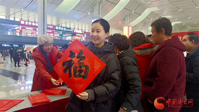 春運首日,國鐵蘭州局在蘭州西站、銀川站、嘉峪關(guān)南站等車站開展“文明出行 文化相伴”特色活動,通過贈送春聯(lián)福字、文明出行倡議簽名及簡約文藝展演,為候車旅客營造濃厚年節(jié)氛圍。
