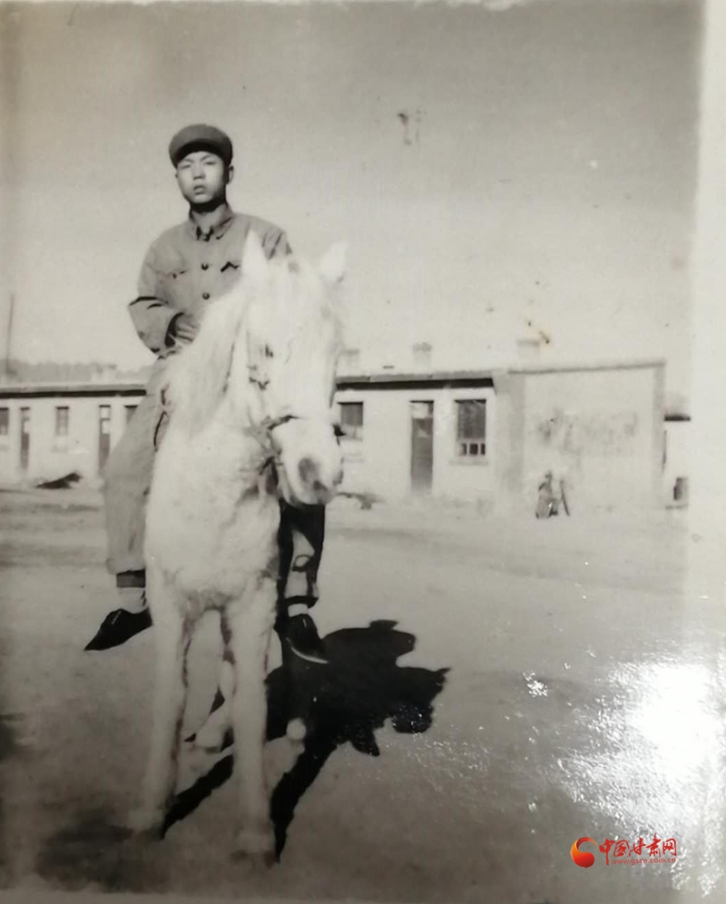 照片是它傷愈后,我?guī)F(tuán)部獸醫(yī)站檢查身體時(shí)拍的。我站在它旁邊,年輕的臉,驕傲的神情。它還是那樣安靜地站著,像一位沉默的老兵。