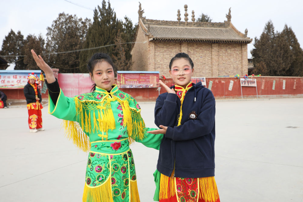 王欣怡、王欣語姐妹倆自小學習舞蹈,看著社火長大的她們已連續(xù)兩年參加當地社火表演。“社火表演熱鬧有趣,就像一種角色扮演,讓我們對傳統文化有了直觀的感受。”王欣怡說。