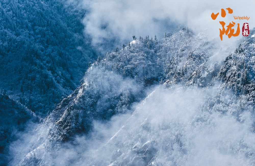 山腰墨綠色的松林,松枝上掛滿了毛茸茸的雪凇。那不是雪,那是大自然最細(xì)膩的工筆,描繪出的雪凇奇觀。風(fēng)起時(shí),細(xì)碎的冰晶簌簌飄落,折射出萬千銀光,如夢(mèng)似幻。