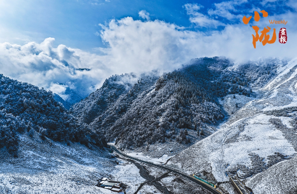 從高空俯瞰,烏鞘嶺的山脊線在雪中若隱若現(xiàn),一側(cè)云海翻騰,一側(cè)晴空萬里,形成鮮明的“一山分兩景”的奇觀。