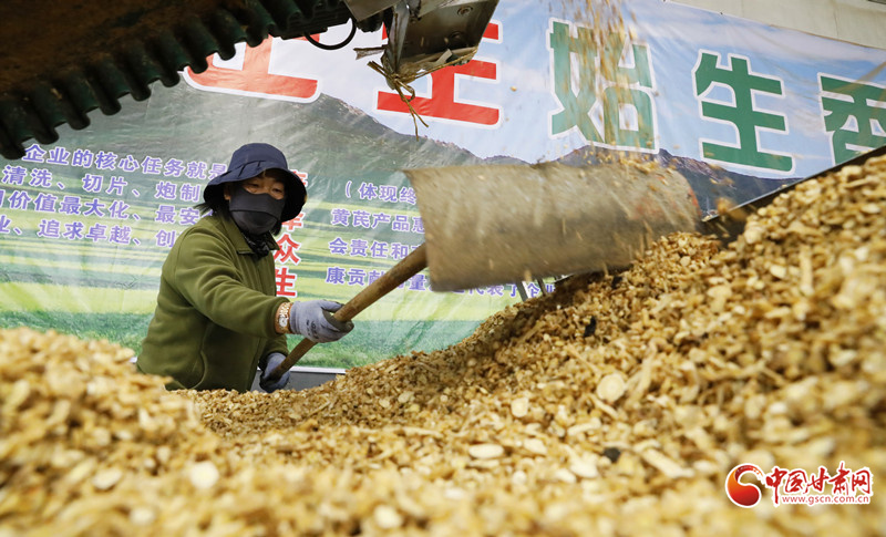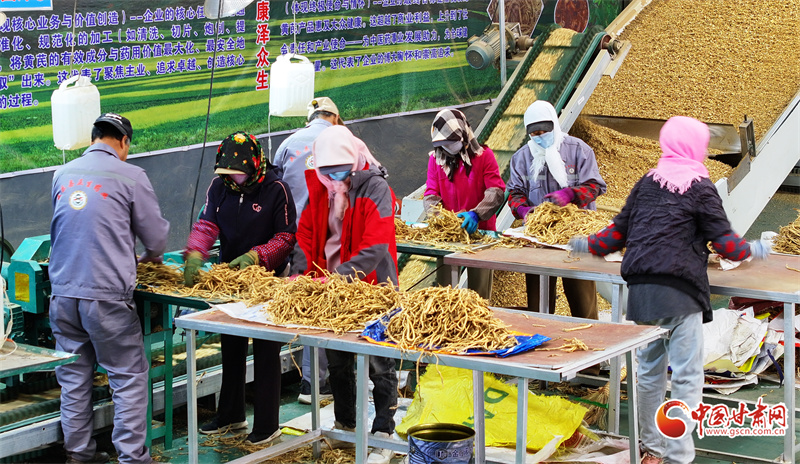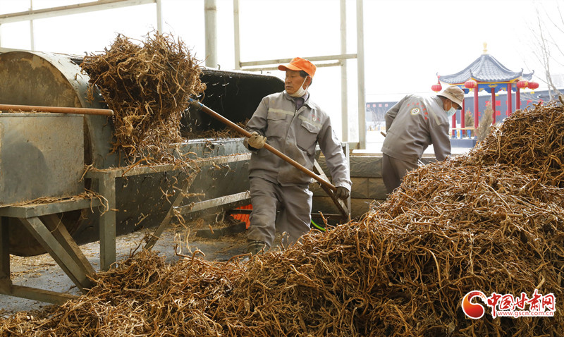 3月17日,在位于民樂縣順化鎮(zhèn)的正生藥業(yè)有限公司中藥材切片車間內(nèi),工人們正在分揀、切片、晾曬中藥材。